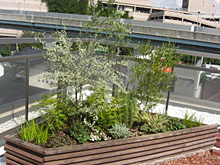基本、屋上部分に植栽はしませんが、殺伐とした尾上部分に緑があると気持ちがいいですね。もちろん防水、防根対策は万全です。